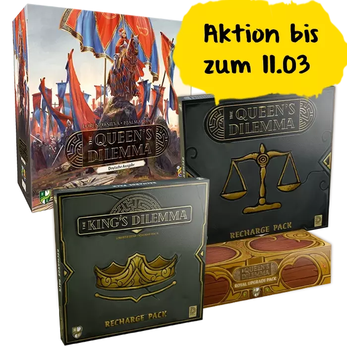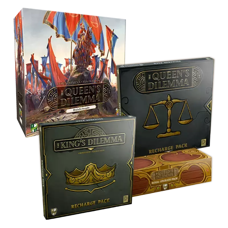 - The Queen's Dilemma Royal Upgrade Pack (Hiermit können die Papptoken durch Metall und Holz-Token ersetzt werden können)